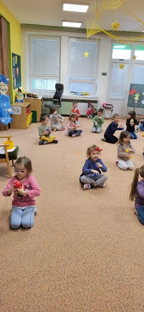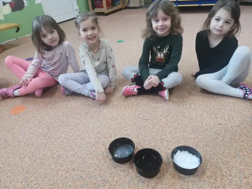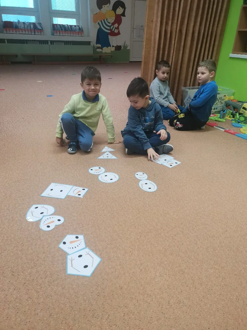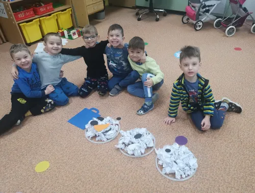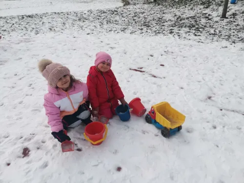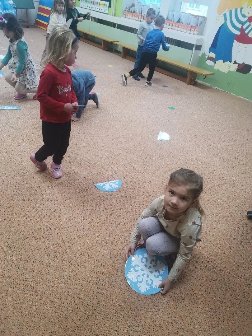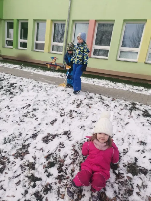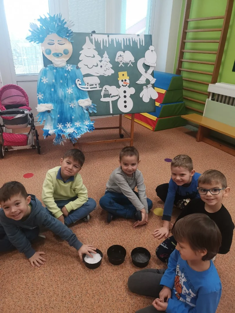 "Hrajeme si, dovádíme i sněhuláky si stavíme! Paní Zimu jsme písní probudili a pokusy si s ní zkusili. Tvoříme i malujeme, ve třeťáku zimu milujeme!"