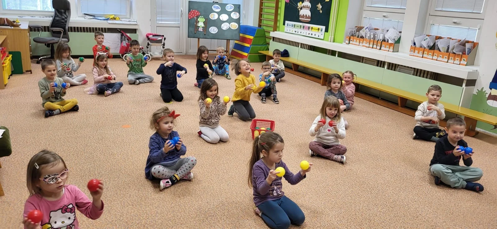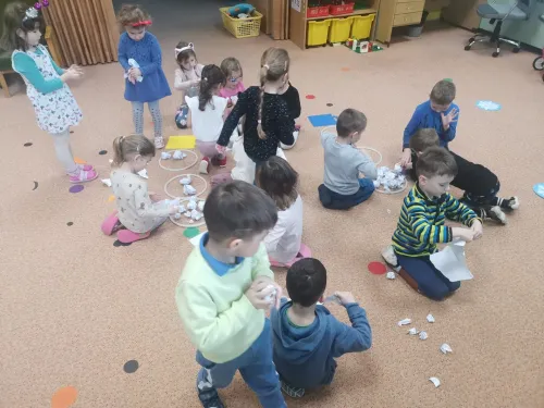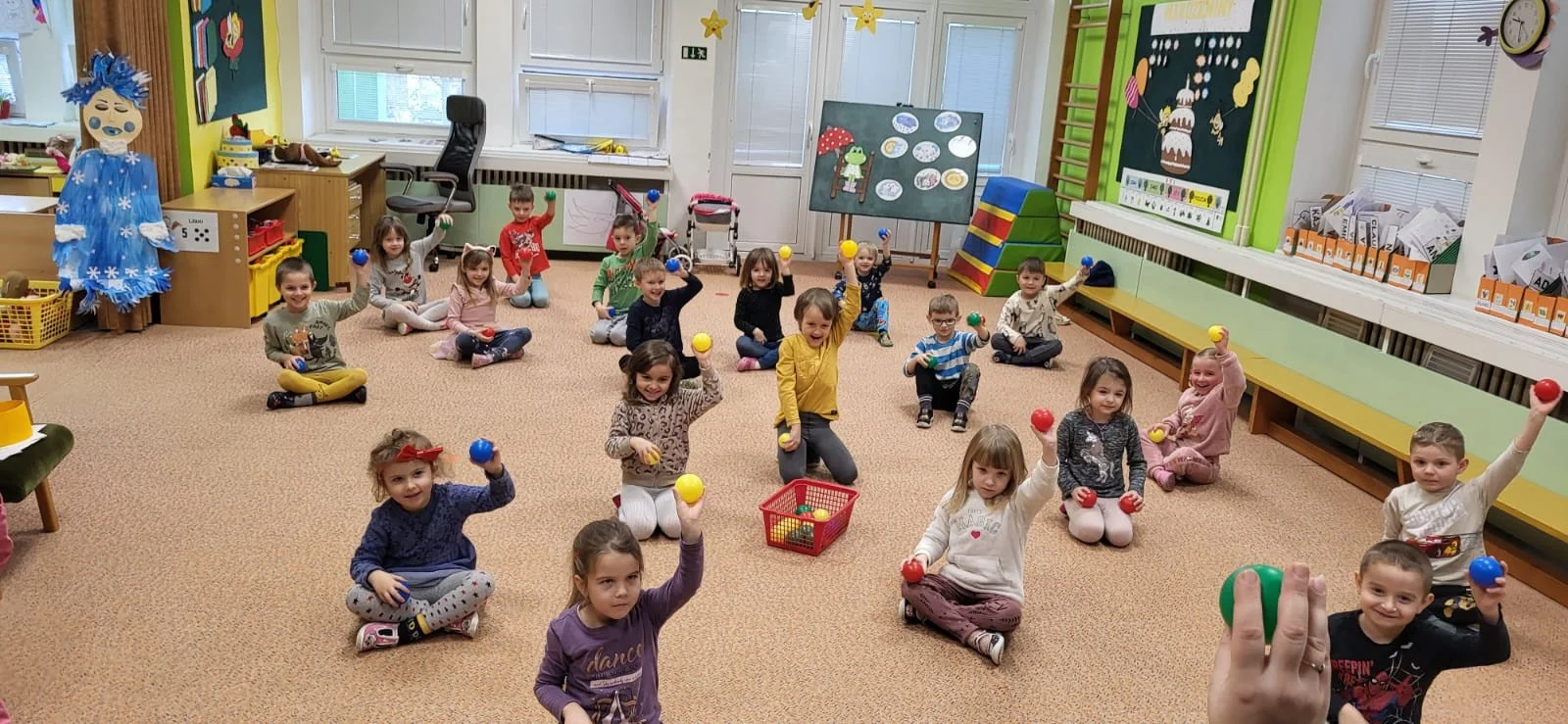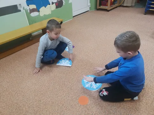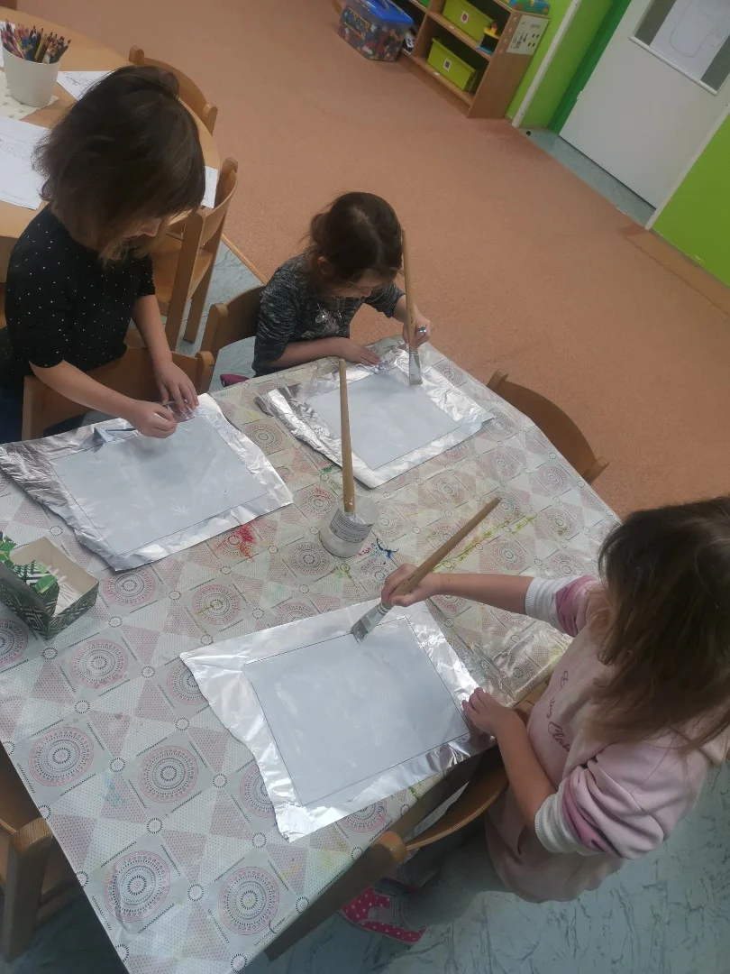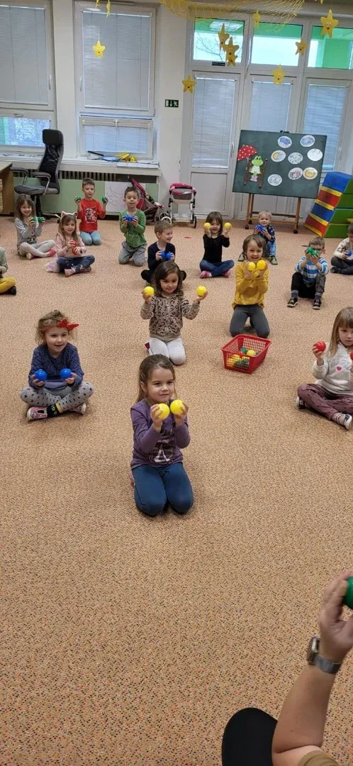 "Hrajeme si, dovádíme i sněhuláky si stavíme! Paní Zimu jsme písní probudili a pokusy si s ní zkusili. Tvoříme i malujeme, ve třeťáku zimu milujeme!"